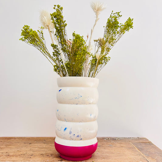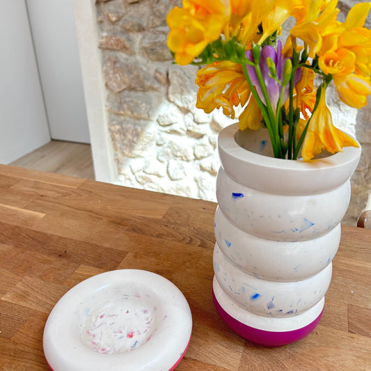 Vase en bouchons plastiques et éco-résine ROSE