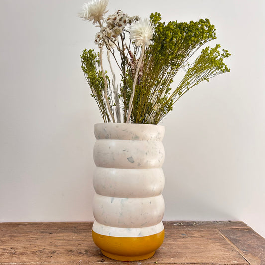 Vase en bouchons plastiques et éco-résine JAUNE OCRE