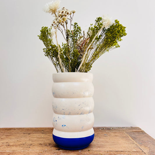 Vase en bouchons plastiques et éco-résine BLEU OUTREMER