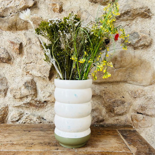 Vase en bouchons plastiques et éco-résine VERT OLIVE