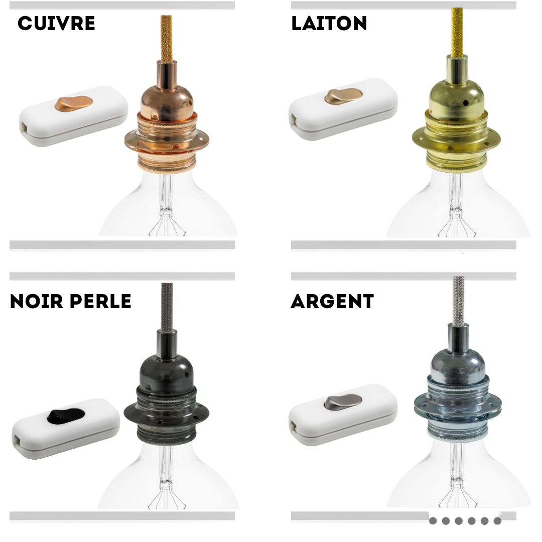 Le câble textile associé et la douille métal lui ajoutent une couche d’esthétisme. Vous pouvez à votre guise personnaliser ce luminaire, en choisissant la couleur de la douille et du câble.
